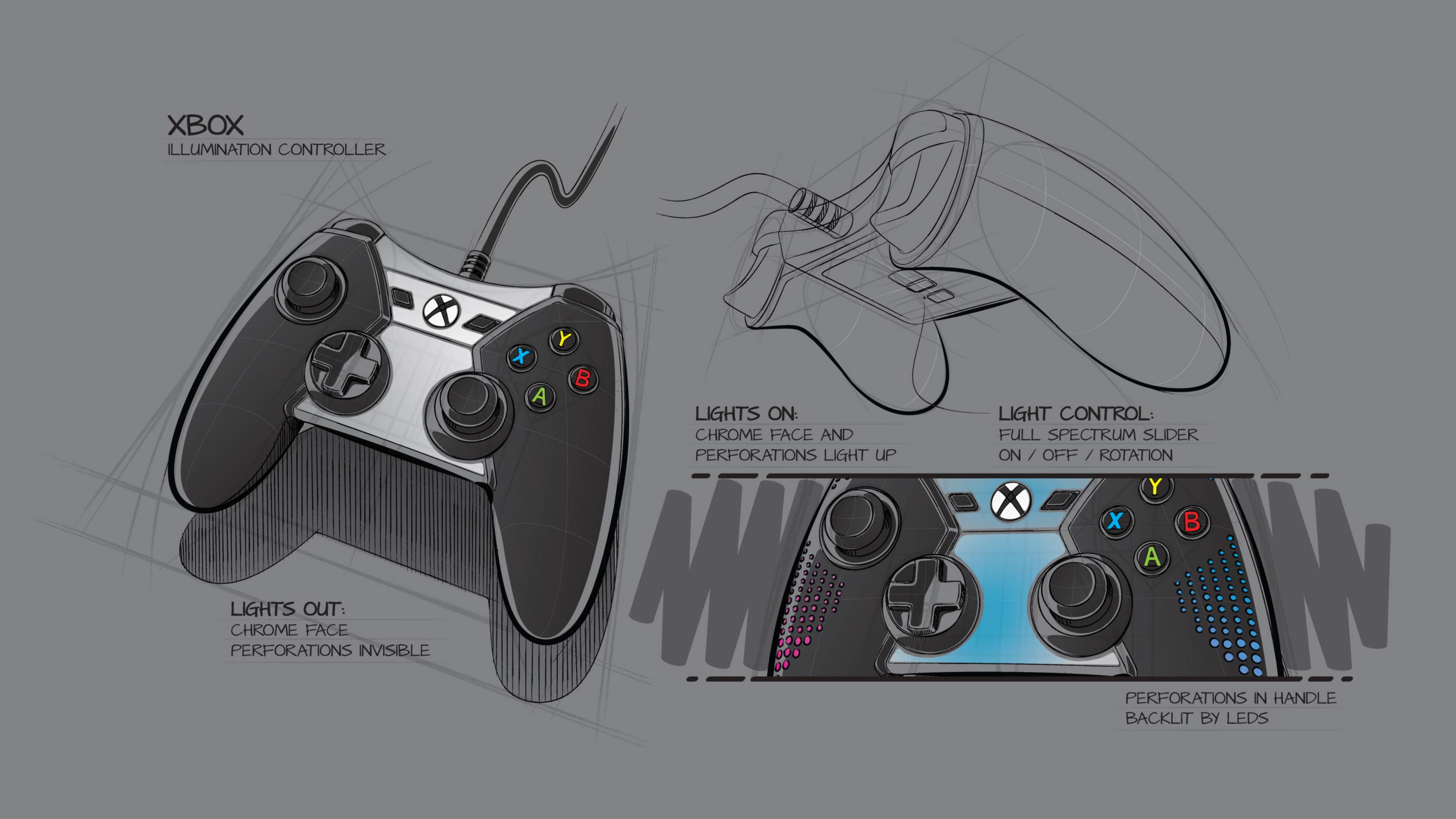 Working closely with the industrial designer at BDA, we envisioned a light-up gaming controller with the ultimate selection of customizable features including a trans-metallic shell, patterned light perforations, and an interface to control 225 combinations of colors, independently lit panels, illumination cycle modes, and brightness.